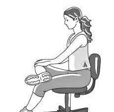 Eleve os pés do chão e, com as pernas levemente estendidas, movimente os pés para dentro e para fora. Repita 20 vezes.