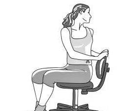 Afaste ligeiramente a coluna da cadeira e rode os ombros devagar para trás, 20 vezes. Esse movimento ajuda a liberar tensões na região cervical e dorsal.