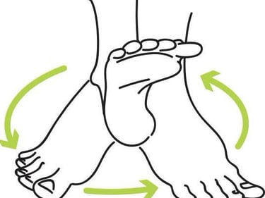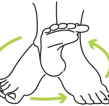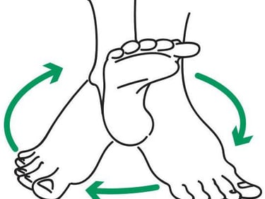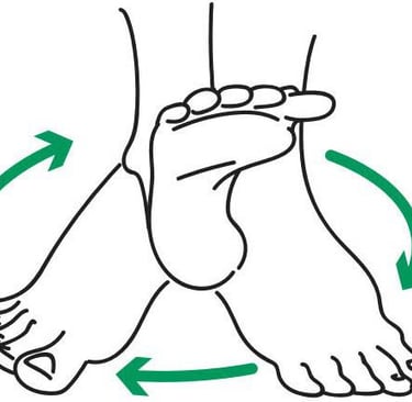 Sentado confortavelmente, realize movimentos circulares com os pés