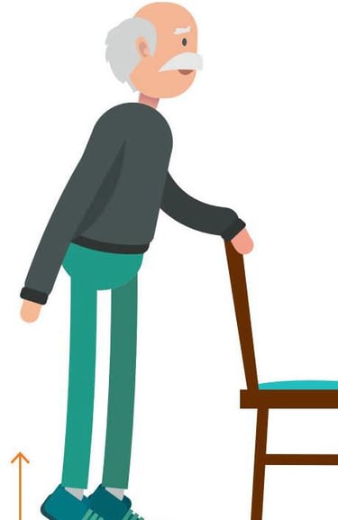 Em pé com apoio, elevar os calcanhares