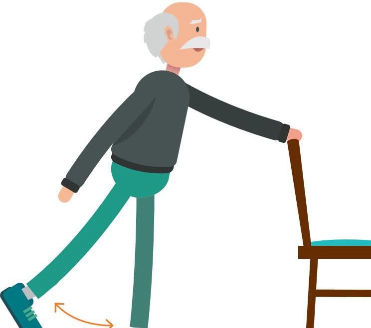 Com apoio de uma cadeira ou outro item, flexionar levemente os joelhos